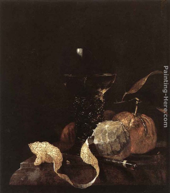 We offer 100% handmade reproduction of Still-Life with Lemon, Oranges and Glass of Wine painting and frame