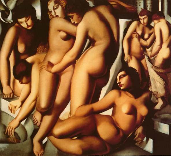 This Tamara de Lempicka Women at the Bath painting is oil on canvas. We offer original oil painting, stretched canvas and large framed art, but do not offer poster, print or giclee for this Tamara de Lempicka Women at the Bath.