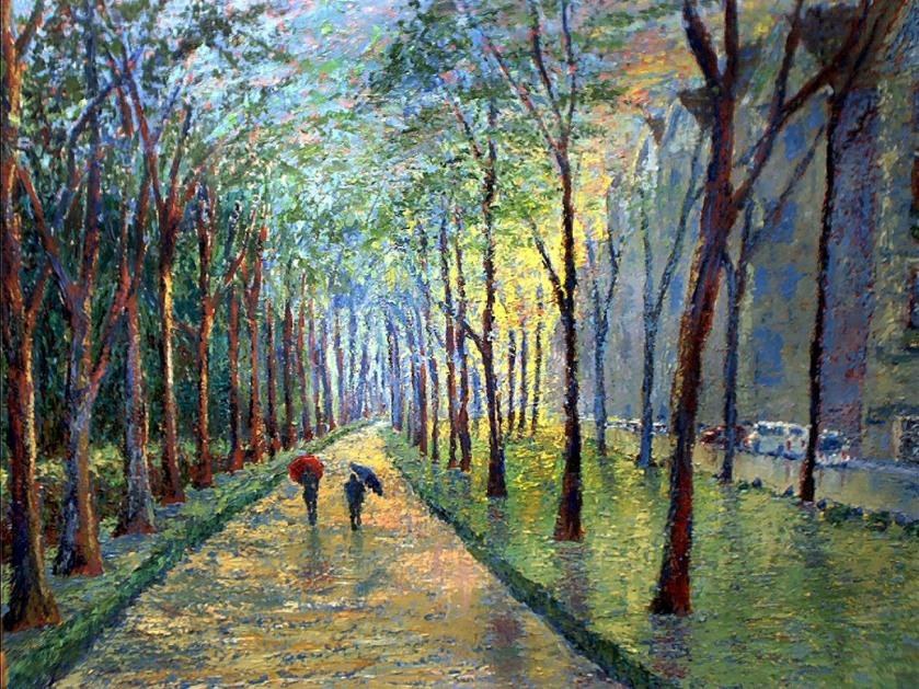 Beautiful, original hand-painted artwork in your home. Zach Ladner Brussels in the Rain based on the masters' works of 2011.